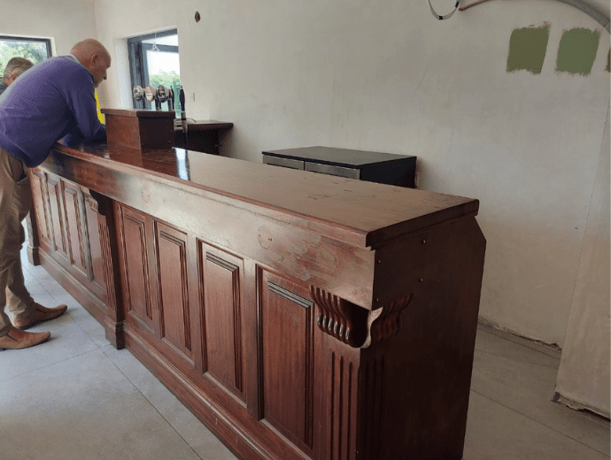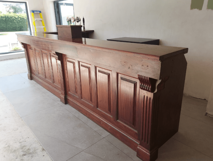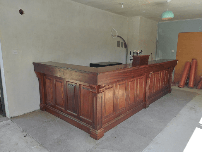 Armed with approximate measurements of the room, the client’s first action was to schedule an appointment to arrange a visit to our warehouse / showroom and meet Mick, our master fitter. Having viewed the range of complete bars on display and other options available, the customer expressed an interest in a particular bar.