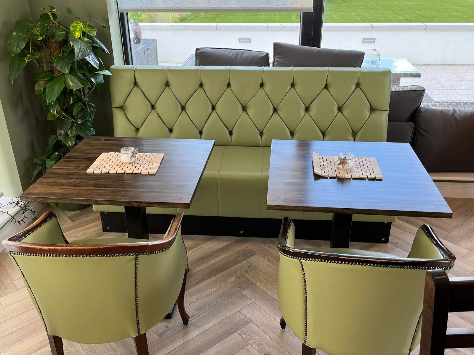 The client then met Aidan, our in-house upholsterer and agreed on their choice of fabrics and colours. Aidan upholstered all the seating as well as making the curtains.
