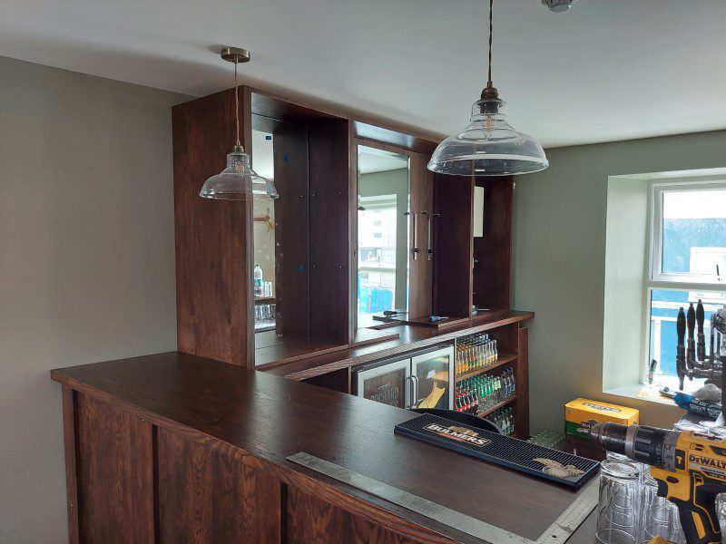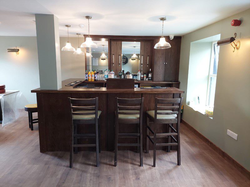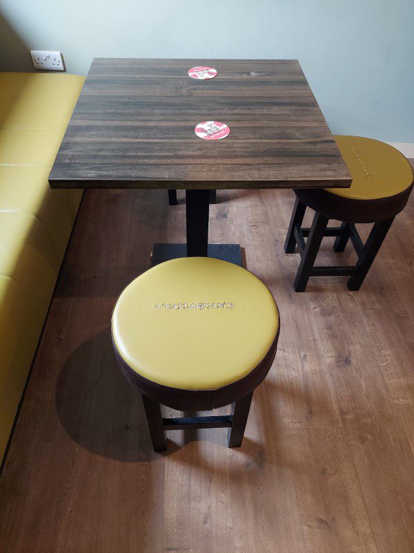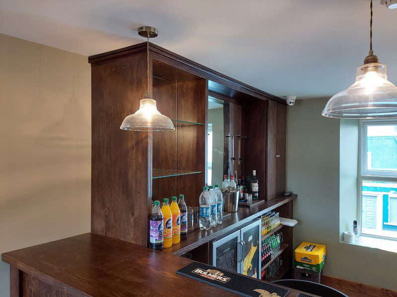 This is a new bar built in-house by our team and the bench seating was built to order by our master Upholsterer Aidan Doyle at our warehouse in Kilbeggan.