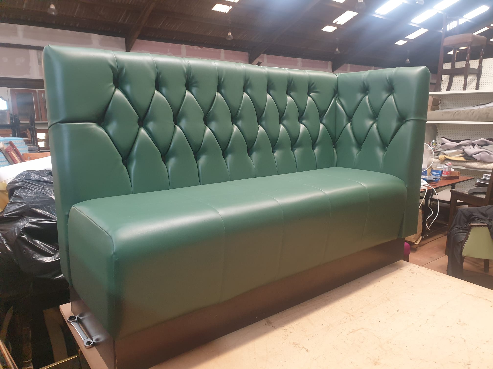 This is another of one of our recent upholstery jobs where we took in banquette seating from Delaney’s Bar in Ballymahon, completely refurbished them and upholstered with deep buttoning to customer specifications