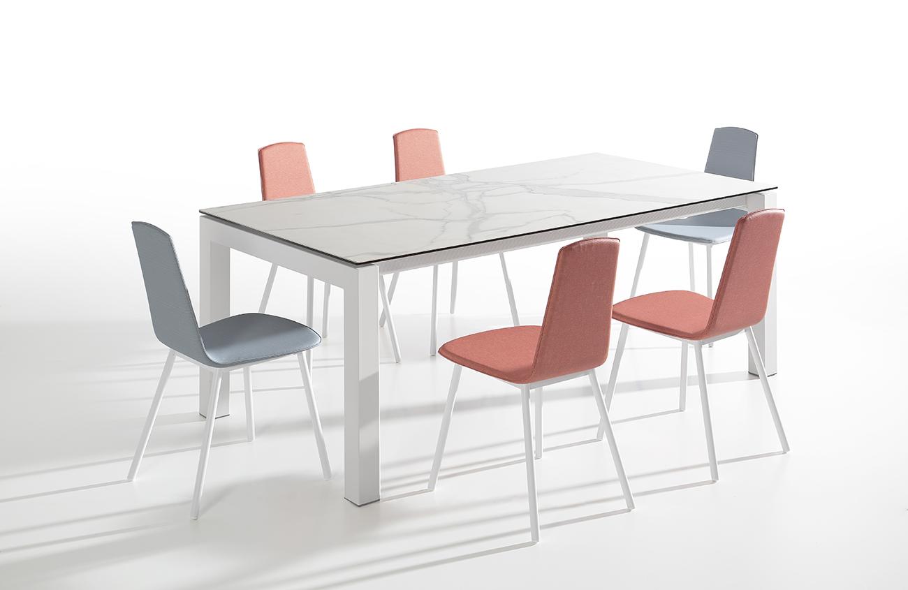 Table: frame + legs metal epoxy white / suface (top) techlam kalos bianco.