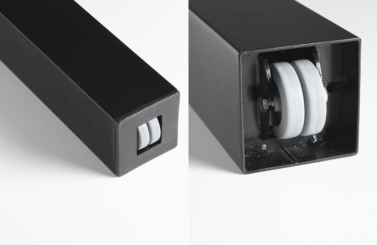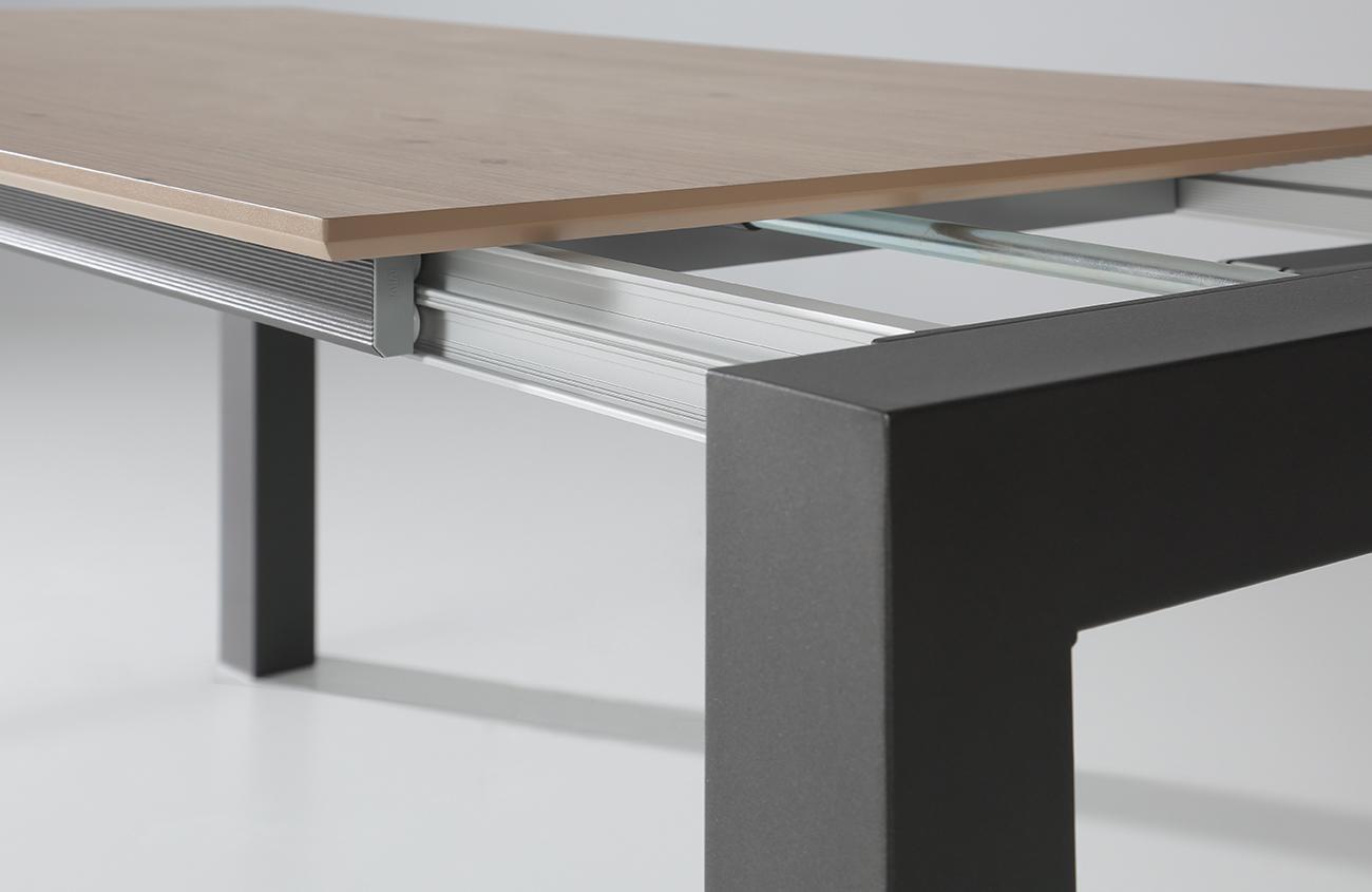 Double extensible. Its ingenious aluminium guide system provides ease of opening and stability on a large surface.